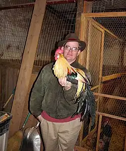![]() Malcolm McCallum at his home in Texarkana circa 2008 with a bantam golden phoenix rooster | |