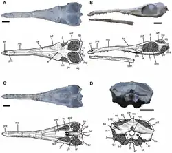 - ^ a b Parrilla-Bel, J.; Young, M. T.; Moreno-Azanza, M.; Canudo, J. I. (2013). Butler, Richard J (ed.). "The First Metriorhynchid Crocodylomorph from the Middle Jurassic of Spain, with Implications for Evolution of the Subclade Rhacheosaurini". PLOS ONE. 8 (1): e54275. Bibcode:2013PLoSO...854275P. doi:10.1371/journal.pone.0054275. PMC 3553084. PMID 23372699.