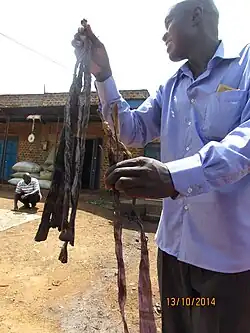 Malewa is smoked bamboo shoot which is dried for preservation. The bamboo trees grow in the wild in eastern Uganda around Mt. Elgon in the districts of Bududa, Sironko and Mbale.
