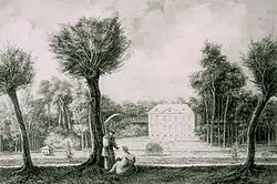 A historic view of the park and the Château Malou from 1831