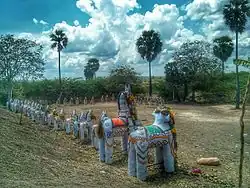 'Puravi Eduppu'(Tamil: புரவி எடுப்பு திருவிழா) is a festival beseeching the rain gods for their mercy. This is the festival taken for the deity Karanthamalai Aiyanar who protects the rural villages and their families. The festival of Aiyanar is decided upon by the entire village. The clay horse statues eyes are opened and then carried at a fast pace to the temple, where they receive a place in front of the old statues. This terracotta horses seen inside the compound are given to the god in order to walk around his territory on night time to assert and record its boundaries.[23]
