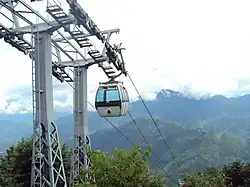 There are currently 34 gondolas with 6 passenger seating capacity each and 3 freight carriers in operation. The cable car ride covers a distance of 2.8 kilometres (1.7 mi) in 10 minutes.[7] The cable car system was imported from Austria and guarantees a hundred percent safety, featuring automatically operated generators in case of power failure and hydraulic emergency drive.