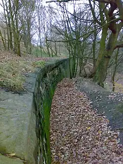 The canal was commissioned in 1791 by local landowners and businessmen and built between 1791 and 1808, during the Golden Age of canal building, at a cost of £127,700 (£12.5 million today).[2][3] Originally designed for narrow gauge boats, during its construction the canal was altered into a broad gauge canal to allow an ultimately unrealised connection with the Leeds and Liverpool Canal. The canal company later converted into a railway company and built a railway line close to the canal's path, which required modifications to the Salford arm of the canal.