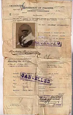 - An emergency laissez-passer.[2] An ordinance allowing the High Commissioner to issue passports to Mandatory Palestine's citizens was promulgated soon afterwards.[4]