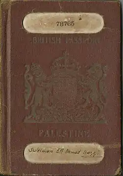 Mandatory Palestine passports were travel documents issued by British authorities in Mandatory Palestine to residents between 1925 and 1948. The first brown-covered passport appeared around 1927, following the issue of the Palestinian Citizenship Order 1925. From 1926 to 1935 alone approximately 70,000 of such travel documents were issued.[1]