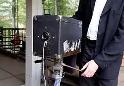 The Mandel No. 1 Photo Postcard Machine was a photo camera built in the years 1911 to 1930 by the Chicago Ferrotype Company.[1] Like cameras from some other brands in that time, the camera produced a small photograph in waiting time. The photograph could be used as a real photo postcard and sent by mail, hence the name.