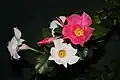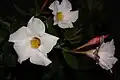Other cultivars: Mandevilla 'Red Riding Hood' with pale red flowers, 'My Fair Lady' with white flowers, yellow throats and pink buds, 'Alba' with white flowers, 'Rosea' with pale pink flowers and yellowish throat, etc.[3]