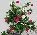 In temperate regions of Europe, it is usually grown in pots indoors, and possibly outdoors in the summer. Horticultural forms are generally sold under the name of Dipladenia.
