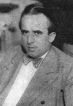 Gurlitt's music was banned by the Nazis when they assumed power, but his presence in Berlin was tolerated as he undertook to bring his music in line with the aesthetics of the Third Reich. His mother Annarella tried to satisfy the Nazis of his non-Jewish heritage by certifying first that his Jewish paternal grandmother had converted to Protestantism and second that Gurlitt was not the son of Fritz Gurlitt, but of Willi Waldecker, the man Annarella married not long after Fritz died in 1893.[2] Manfred Gurlitt was accepted as a member of the Nazi party on 1 May 1933.[1] He was ejected from the party by court order on 3 May 1937. The court declared that Gurlitt was a "Jew of Mixed Race of the 2nd Order".[2] German authorities frustrated his attempts to secure a teaching position in Japan for months, until he managed win readmission to the Reichsmusikkammer (State Music Institute) and proposed a trip abroad for "study, observation, and documentary" activities. He emigrated in April 1939 and arrived in Yokohama, Japan, with his third wife on 23 May.[10] Japan was then an ally of Germany, both soon to become parties to the Axis Pact in September 1940.
