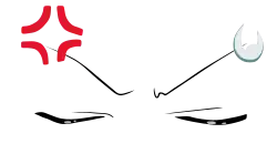 Throbbing "cross popping" veins, usually depicted as a hollow cruciform in the upper head region, indicate anger or irritation.[5][D 3]: 39 These shapes can sometimes be exaggerated, and placed on top of hair when the character is facing away from the viewer. Further throbs indicate additional anger. This anger symbol has a red color and four red lines.