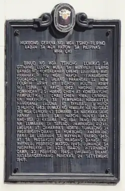 Two historical markers from the NHCP commemorating the Wha-Chi guerilla forces (1994[16] & 2005) are affixed on each side of the entrance of the Memorial Hall.