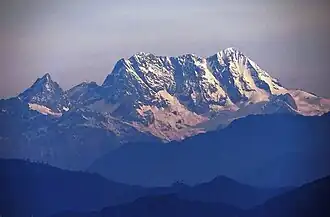 Mankial Sar is a 5,722-metre (18,773-foot) glaciated summit in the Hindu Kush.[1] The mountain is situated 80 kilometres (50 mi) north-northeast of Mingora. Precipitation runoff from this mountain's slopes drains west into the Swat River and east to the Indus River via the Kandia River. Topographic relief is significant as the north and south faces each rise 900 metres (2,952 ft) in one kilometre (0.62 mi), and the summit rises 3,920 metres (12,860 ft) above the Swat River in 11 kilometres (6.8 mi). The first ascent of the summit was made on June 28, 1940, by R. L. Holdsworth, John Martyn, Jack Gibson, and Rinsing (Sherpa porter).[3] The fourth ascent in 1966 was beset by two fatalities: American J. R. MacArthur and German Ulrika Fürst.[4]