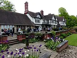 Manley Knoll is a small country house north of the village of Manley, Cheshire, England. It was designed in 1912 for Llewellyn Jones.[2] Its construction was interrupted by the First World War. In 1922 the interior was remodelled for the Demetriades family by the Manchester architect James Henry Sellers. In the 1920s a billiard room was added. The house is constructed in buff-brown brick with orange brick dressings, and some timber framing and roughcast. The roofs are tiled. Its architectural style has been described as Arts and Crafts,[2] or eclectic Vernacular Revival.[1] It has an irregular linear plan. The entrance front is asymmetrical, in two storeys, with an off-centre porch. To the left of the porch is a timber-framed projection, and to the right is a staircase bay and a service bay. In the garden front are four timber-framed gables with a central loggia over which is a balcony.[1] Each of the gables is decorated with different Cheshire patterns.[2] The house is recorded in the National Heritage List for England as a designated Grade II listed building.[1]