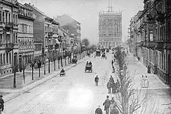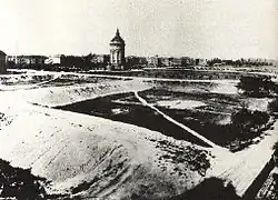 The water tower under construction, 1887 (from Mannheim's main shopping street)
