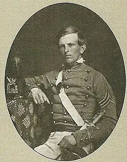 At the beginning of the Civil War, the regiment was sent east to defend the capital via Indianola, Texas, and Carlisle, and fought in the Union defeat at the First Battle of Bull Run on July 21, during which Kimmel was commended for gallant conduct. The 2nd Cavalry retreated to the Washington defenses, after which Kimmel resigned his commission on August 14,[1] at the Galt House in Louisville, Kentucky,[8] and joined the Confederate Army with the rank of Major.[9] This made him one of the four West Point graduates to serve on both sides in the war, along with William T. Magruder, Donald C. Stith, and Richard K. Meade.[10] Kimmel became adjutant-general on the staff of Brigadier-General Benjamin McCulloch, until the latter was killed on March 7, 1862, in the Battle of Pea Ridge. Kimmel then became the assistant adjutant-general on the staff of Major General Earl Van Dorn, McCulloch's superior. After Van Dorn was shot by an angry husband on May 7, 1863, Kimmel briefly was the Confederate adjutant-general of Missouri, and later became acting assistant and inspector-general on Major General John B. Magruder's staff, in which capacity he ended the war.[2]
