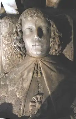 - Sir John Bluett (1603–1634) (grandson, son of Arthur Bluett), MP for Tiverton 1628–29. His monument with effigy exists in Holcombe Rogus Church. He married Elizabeth Portman (1602–1636) by whom he had no sons but eight daughters who were prevented from inheriting the manor by tail-male, and the heir was his brother Francis.