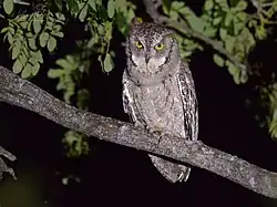 The Mantanani scops owl (Otus mantananensis), is a small owl in the scops-owl genus Otus found on small islands between Borneo and the Philippines. It is listed by the IUCN as "near threatened" because its range is limited with its population being fragmented on several different islands, and its forest habitat is being degraded by ongoing logging and clearance.