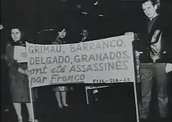 The other prisoners reportedly did not witness the "suicide". The only witness was the police in charge of the interrogation, who claimed that he was there to inform Barranco of his transfer to Madrid.[12] The case shows many similarities with the defenestration of Julian Grimau,[13] as well as with four police defenestrations suffered by inmates between 1963 and 1969, none of which was admitted by the authorities.[14] The police prevented his mother from seeing her dying son and were present at his funeral,[15] discouraging his own friends from attending.[16] Many dubious rumours spread about the reasons for his arrest, for example, that he was involved in some anti-Francoist conspiracy and that he found his missing father in Paris.[17]