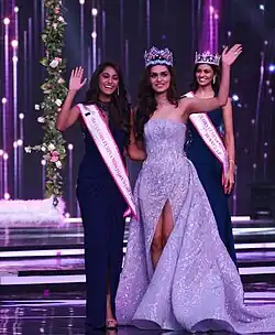 She later went on to win the contest's main title Femina Miss India World 2017, in the finale event hosted at the Yash Raj Film Studio, on 25 June 2017. By winning, she earned the right to represent India at Miss World 2017.[27][28]