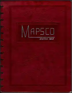 The first Mapsco Product, the Dallas Street Guide, was printed in 1952, with 3,000 copies produced. The original book covered Dallas and the Park Cities, with insets for Carrollton and Garland, Texas. The book was originally not intended for public sale, and was only to be used by Keith's large fleet of flower delivery drivers. Soon, however, other flower shops began asking Keith and his employees for copies of the books to aid them in their deliveries as well.[1][2][3]