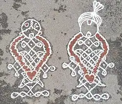 Marapachi Dolls, also known as Marapachi Bommais (literal meaning: "wooden dolls"), are traditional dolls made specifically of red sandalwood (Pterocarpus santalinus) or silk-cotton-wood (Bombax) or red wood (Sequoioideae) which are displayed during the Golu festival in South India as part of Dassara or Navaratri celebrations. These dolls made in pairs generally of male and female are dressed up by children as part of plaything and displayed during the Golu or "Bommai Kolu" festival. Tirupathi is one of the locations where it is specially ornamentally carved, and the dolls are stated to represent Venkateshwara and his consort.[1][2][3] They are also made in Kondapalli as Raja-Rani (King and Queen) dolls which are a compulsory display during the Golu festival.[4]