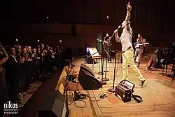 Kostis Maraveyas or Kostis Maravegias (Greek: Κωστής Μαραβέγιας), also known by his stage name Maraveyas ilegál or just Maraveyas,[1] is a Greek singer-songwriter, composer, performer, director,[2] TV presenter and writer. He plays the accordion, piano, guitar, hammond, farfisa and he sings in Greek, English, Spanish and Italian. Although he began his musical career in the underground and alternative music scene of Italy and Greece,[3] as of 2015 Maraveyas has reached wider audiences and is considered as a well known songwriter-performer in Greece.[4]