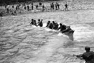 ![]() Pictured are the Abkhazian separatists and their allies, crossing the Gumista River. | |||||||