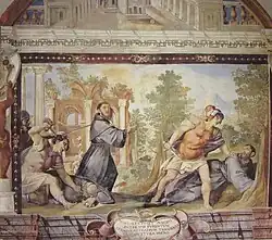 Marculus' martyrdom is chronicled in the contemporary Donatist account Passio benedicti martyris Marculi.[10] Similar to other Donatist martyr stories, this narrative is crafted with the purpose of connecting the courage of contemporary martyrs with those who suffered under pagan authorities. Rich in apocalyptic imagery, the Passio Marculi positions emperor Constans as a central figure portrayed as the "dragon" who unleashes "two beasts" against the true church. The extreme antipathy towards Constans, denouncing him as "Antichrist" finds parallels in the writings of Cyprian and Tertullian. The Passio serves as an apocalyptic drama where the Macarian persecution signals the Last Judgment, depicting the traditor church (Catholics) and the tyrannical empire (Romans) as Antichrist's servitors.[11]