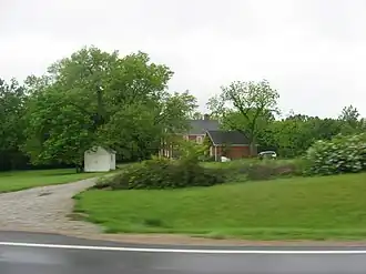 The Marcus Curtiss Inn is a historic house and post office located near Galena in Genoa Township, Delaware County, Ohio, United States. A native of Connecticut,[2] Curtiss moved to present-day Genoa Township in 1808, becoming the first settler in the area, along with his family, his brother's family, and a third family who also moved from Connecticut. Here, he established himself on 681 acres (276 ha) of land and began to farm; part of his land was very clayey, and Curtiss decided to start a brickworks on the site. Although he left home to serve in the War of 1812, he returned to modern Delaware County after the war and resumed construction on the present house.[2]