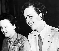 Major Margaret D. Craighill, the first woman Medical Corps officer, with Dr. Elizabeth Garber (left), a WAAC on the hospital staff at Fort Des Moines. Both were sworn into the Medical Corps of the U.S. Army.