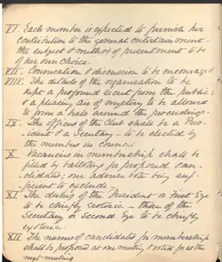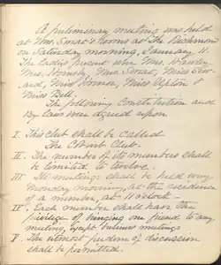"at first there was no thought of making the club a literary center, but here is just the difference between a man's club and a woman's; to the former his club is a place of recreation to the latter it must be a place of self culture in some, direction or other."