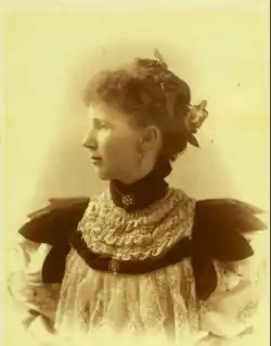 Margaret (nickname "Maggie") Adeline O'Connor was born in Gainesville,[2] Hall County, Georgia,[3] in 1856.[4] She was the daughter of Elizabeth Pettigrew Thompson and Patrick O’Connor. She was descended on her mother's side from colonial and Revolutionary ancestry which included the families of Thompson, Wade, Gibbs and Weeks of Virginia, and on her father's side from Roderick O’Connor, the last High King of Ireland. Her father, Lieutenant O’Connor, under the command of General Lucius J. Gartrell in the Confederate States Army, was one of five sons who died fighting for the Confederacy during the American Civil War, and one uncle, Captain James O’Connor, filled an unknown grave in the cemetery at Camp Chase, Ohio, victim to prison life. Dr. William Thompson, an uncle, served as surgeon major for two years with the Arkansas troops.[2]