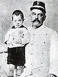 The marriage was overall a disappointment.[15] Rudolf was an alcoholic, physically abused Margaretha, and blamed her for his lack of promotion. He openly kept a concubine, a socially accepted practice in the Dutch East Indies at the time. When Rudolf was posted to Medan, Margaretha and the children remained in Toempoeng with the family of Mr. van Rheede, the government comptroller.[16] Friends of Margaretha's in the Netherlands recall her writing to them around this time to say that she had taken the name Mata Hari, the word for "sun" in the local Indonesian language (literally, "eye of the day").[17]