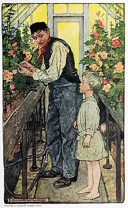 "I started to write stories because I realized that they were marketable products for which I could receive money", Gerry explained to an interviewer in 1917.[3] Novels by Margarita Spalding Gerry include The Toy Shop (1908),[4] The Masks of Love (1914), The Sound of Water (1914), Philippa's Fortune (1921), Philippa at the Chateau (1922), and Philippa's Experiments (1923). Her serialized The Flowers appeared in Harper's Magazine in 1908, with illustrations by Elizabeth Shippen Green. Similarly, Gerry's As Caesar's Wife appeared in Harper's Magazine in 1911, with illustrations by James Montgomery Flagg, before being published as a volume in 1912. Most of her short stories appeared between 1905 and 1925, in Harper's,[5] though some were instead published in Scribner's and The Smart Set. A collection of her early short stories, Heart and Chart, was published in 1911. Gerry also wrote a non-fiction work, Through Five Administrations: Reminiscences of Colonel William H. Crook, Body Guard to President Lincoln (1910).[6]