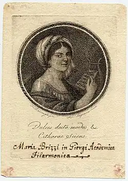 Maria Brizzi Giorgi (7 August 1775 โ 7 January 1812 in Bologna) was an Italian organist, composer and pianist noted for her improvisational ability. A military march composed by Brizzi was performed for Napoleon when he passed through Bologna in 1807. Haydn, Muzio Clementi and Leopold Kozeluch dedicated works to her. She taught music and was member of the Accademia Filarmonica di Bologna.