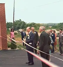 The park was dedicated on June 4, 1972 to much fanfare.[12] Over 800 individuals attended the dedication. Pellegrino, Missouri State Representative Frank Ellis, Lutesville Mayor Orville Liley, Marble Hill Mayor Leon Sander, and Bollinger Chamber of Commerce Vice President F. X. Peters took part in the ribbon cutting.[8] The mayors declared June 4 to be "Pellegrino Appreciation Day" in their cities.[8] Representative Frank Ellis read an official resolution passed by the Missouri House of Representatives thanking Pellegrino for his philanthropic donations to the state over the years.[9]