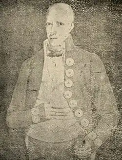 Mariano de Ayoroa y Pacheco (7 December 1769 – 30 May 1841) was a Bolivian royalist who fought in favor of the Spanish during the Bolivian War of Independence. He was the estranged second husband of the criollo heroine Vicenta Juaristi Eguino, who left him three months into their marriage for his strong Spanish ties and sentiments.[1][2] He is the ancestor of Bolivian president Néstor Guillén Olmos.
