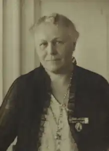 In 1925, she became a board member of the Danish Women's Society, serving as president from 1931 to 1936.[2] At a time when the organization was experiencing serious difficulties, she managed to reconcile the varying views of the younger and older members, paving the way for Edel Saunte to become president in 1936. She also contributed to the political image of the organization, contributing articles to Kvinden og Samfundet.[1]