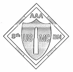 In late 1944, the 2nd, 5th, 8th, and 16th Antiaircraft Artillery (formerly Defense) Battalions formed the 1st Provisional Antiaircraft Artillery Group in preparation to invade the Japanese Home Islands.[6] These battalions did not participate in the Battle of Iwo Jima, however they did land on Okinawa in April 1945. For the Battle of Okinawa the 1st Provisional Antiaircraft Group was tasked with providing antiaircraft defenses for Yontan Airfield and the III Marine Amphibious Corps beaches in the Yontan Area, Southern Okinawa.[7] The Japanese surrender in August 1945 led to a dramatic downsizing in the Marine Corps' Air Defense units. The 52d Defense Battalion was the last defense battalion in the Marine Corps. It was redesignated as the 3d Antiaircraft Artillery Battalion (Composite) on May 15, 1946.[8]