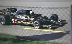 Andretti's timing was fortuitous, as he rejoined Lotus at the eve of the ground effect revolution. Since mid-1975, Lotus had been trying to shape the car to generate downforce (making the car faster in the corners) without a large rear wing (whose drag would make the car slower on the straights). The Lotus design team added sidepods with vents to take in air, which was then channeled under the floor to facilitate the Venturi effect. The car was effectively sucked towards the ground, allowing it to take corners at unusually high speeds.[109] Andretti, whose STP-March team had experimented with sidepods in 1970,[108] encouraged the team to make the sidepods even bigger.[110]