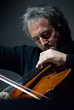 Mario Brunello (born 1960) is an Italian cellist and musician, who is currently Artistic Director of the International String Quartet Competition Premio Paolo Borciani and of the Reggio Emilia String Quartet Festival. Brunello plays a 17th-century Maggini cello which, in the 20th century, belonged to Benedetto Mazzacurati and then to Franco Rossi, cellist of the "Quartetto Italiano". He has played with many orchestras internationally and has performed with various artists.