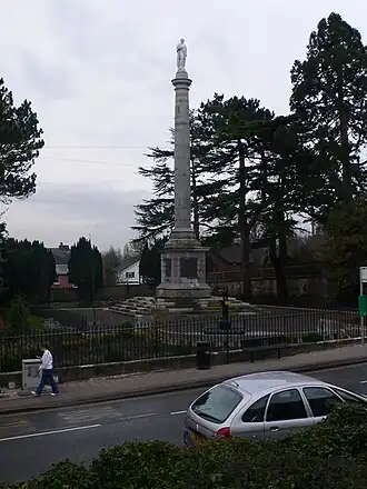 Evan Pierce memorial | Denbigh, Denbighshire | 1872 | Relief panels on pillar with statue | Bronze panels on limestone column with marble statue | 15m high | Grade II* | Panels by Raggi, column by Martin Underwood, statue by W & T Wills[5] | |
