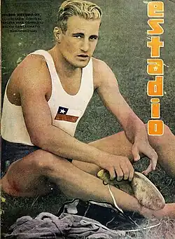 In 1945, he placed in the XIV South American Athletic Championships in Montevideo. Competing for the first time in the decathlon, he won, surprising all the participants not only with his victory but with his physical appearance, tall and blonde, a contrast to the rest of the Chilean delegation.[3]