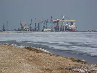 On 26 May 2022, following closure during the Siege of Mariupol, Russia reopened the port to commercial vessels following naval mine removal.[3] TASS stated that the port was operating at full capacity by July 2022.[4] The first bulk carrier, carrying grain, was reportedly loaded by the Donetsk People's Republic in 2023 to be exported. In June 2024, the city's exiled mayor, Vadym Boychenko, said that a Russian tanker had entered the port for the first time since its capture, and that it was being used for military use.[5]