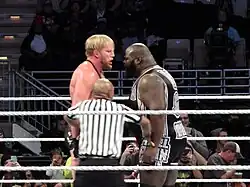 Since joining the World Wrestling Federation (now WWE) in 1996, he became a one-time WWF European Champion and a two-time world champion, having held the ECW Championship in 2008,[23] and WWE's World Heavyweight Championship in 2011.[24] First winning the ECW Championship, he became only the fourth black world champion in WWE history (after The Rock, Booker T, and Bobby Lashley).