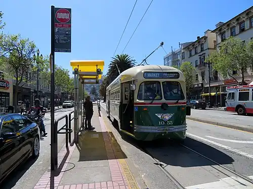 Eastbound streetcar at Market and Noe station in April 2018 | |||||||||||
