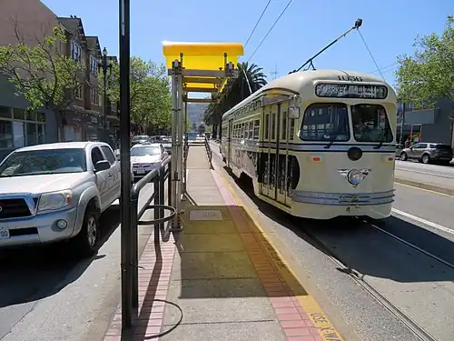 Eastbound streetcar at Market and Sanchez station in April 2018 | |||||||||||