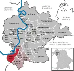 Marktbreit is located on the southwestern edge of the district, where it borders on the districts of Neustadt (Aisch)-Bad Windsheim and Würzburg.