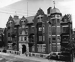 Built in 1900, it is four storeys tall and its facade is red brick.[2] It was designed by architects Taylor and Gordon and is considered to be Queen Anne style architecture.[2]