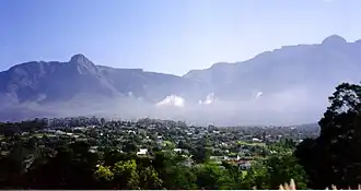 ![]() View over Swellendam of the Clock Peaks in the Marloth Nature Reserve | |